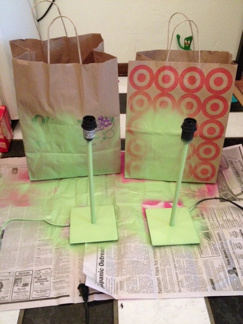 After I painted the butterflies I was feeling pretty capable and thought what else can I paint? After some contemplation I grabbed a can of Rust-Oleum in apple green and set out to paint my lamp bases. One can pick up black lamp bases from IKEA for about $4 a piece and they were easy to paint. Again I loved the lamp shades I had, but was a little sour on the black base, it didn’t mesh with my theme. I smile when I walk into my bedroom and see my apple green lamps with light gray shades, how could you not smile at apple green.
