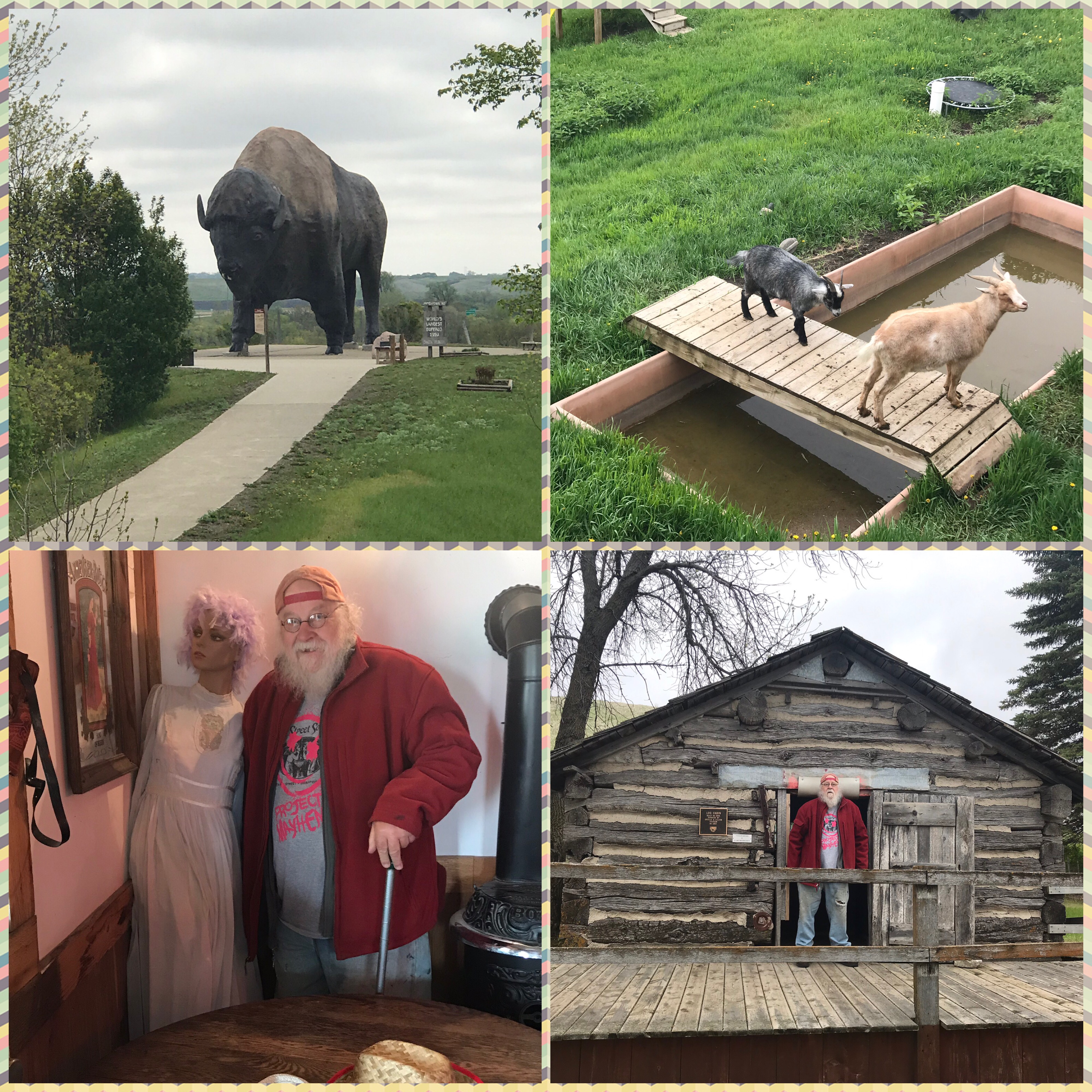 Jamestown is home to the sacred white buffalo and the National American Buffalo Museum. The museum was closed on Memorial Day so we strolled through the frontier village which has goats!