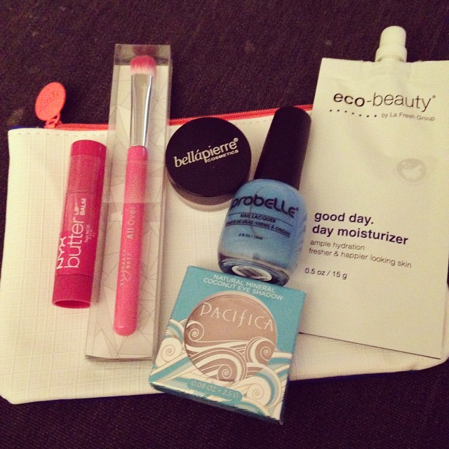 My bag was so so, I have tried the NYX and Pur-lisse brand in other subscription boxes, its nothing worth writing home about. I do love the vintage highlighter, I have been using it as an eye shadow. Its the perfect color for daytime and adds a hint of sparkle to my eyes. I have yet to try the boo boo paste, once my concealer runs out I will give this one a shot. The bag is defiantly a hit, it is so pretty and just screams SPRING!!!