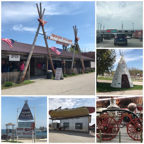 My dad and I stayed in the UP. Our hotel was in St. Ignace which just happens to be the gateway to the UP! The town is beautiful and the people were lovely. On Main Street there is the Museum of Ojibway culture and across from that is the Indian Village Souvenir shop. Seeing that my Dad is Ojibway going to the Museum was a no brainer. The Museum is very informative on Ojibway Culture and the staff was very warm. There is a small area where you can by real Indian made goods and not the “made in China” kind. I ended up buying four hand painted spirit puppets. Thunder is currently sitting on my mantel.